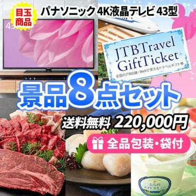 4Kテレビを目玉に豪華目玉景品盛り沢山!誰もが狙う景品8点セット【一部商品引換券】【即納商品】【送料無料】のレビューを書く