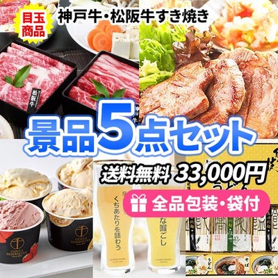 神戸牛・松阪牛セットをメインに男性にも人気の喜ばれる景品5点セット【一部商品引換券】【送料無料】のレビューを書く