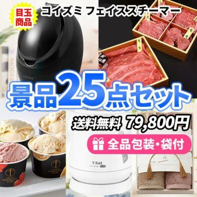 女性に人気のフェイススチーマーに国産牛食べ比べを含めた景品25点セット【一部商品引換券】【多点数】【送料無料】のレビューを書く