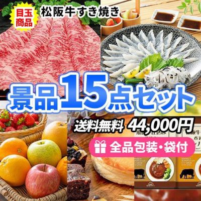豪華!松阪牛・ふぐが目玉の食品ばかりで嬉しい景品15点セット【一部商品引換券】【送料無料】のレビューを書く