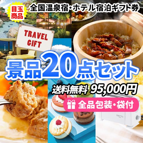 疲れを癒す、全国温泉宿・ホテル宿泊券がメインの景品20点セット【一部商品引換券】【送料無料】